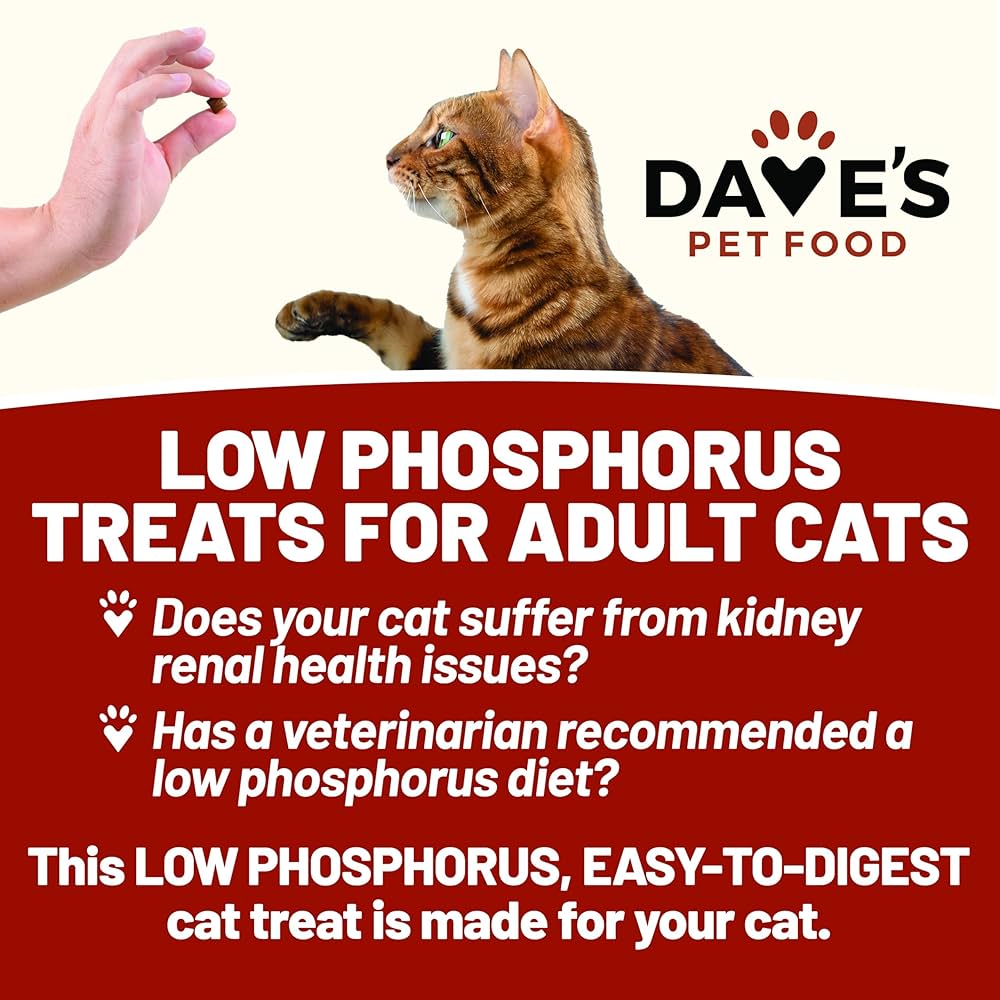 KIDNEY SUPPORT FOR CATS, SUPPORTING RENAL HEALTH – These low-protein, low-phosphorus renal cat treats are formulated for cats with kidney issues. Pairs perfectly with Dave’s Cat Food Wet Kidney Diet or other kidney care cat food.