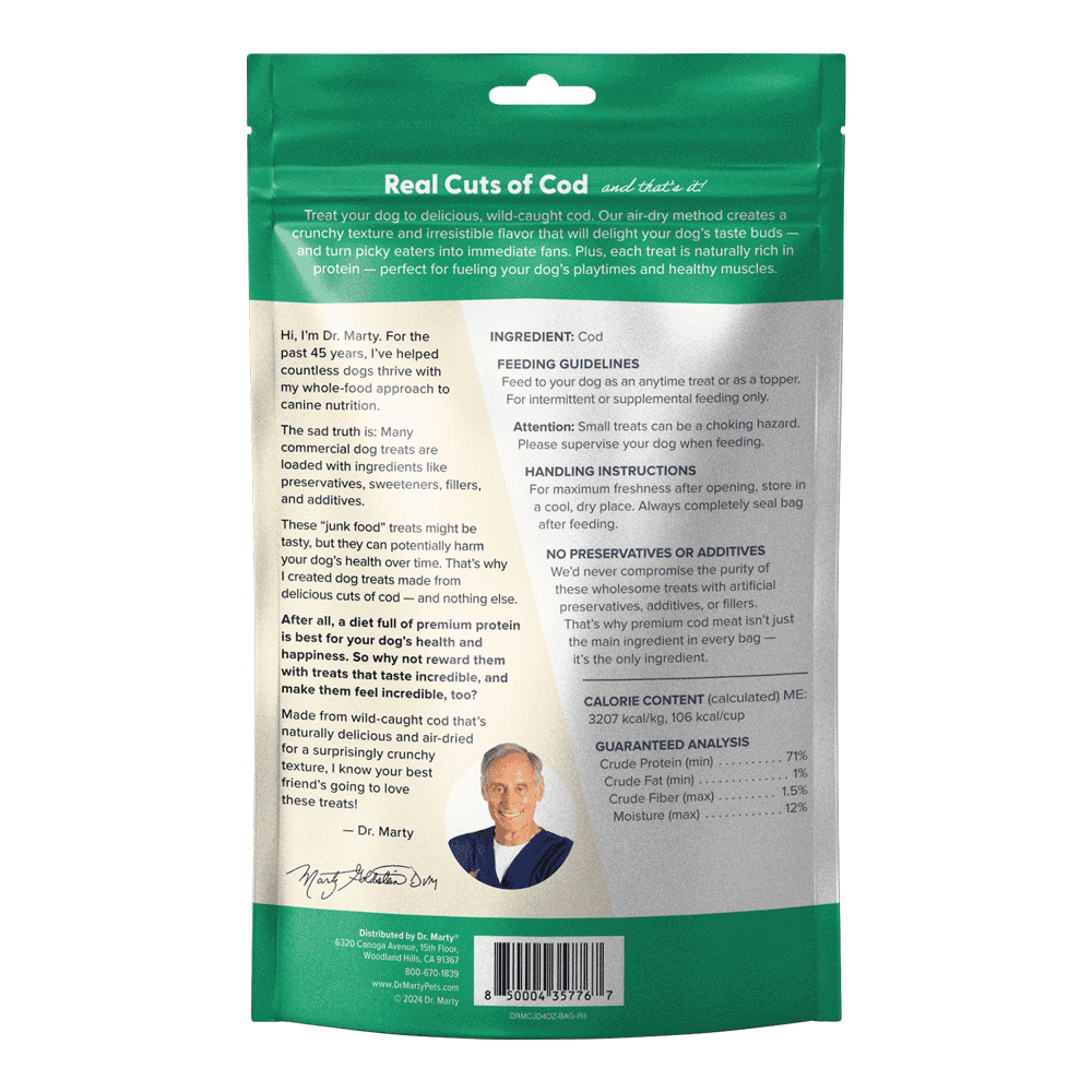Created by Dr. Marty Goldstein, America’s leading integrative veterinarian, Cod Cracklers offer the clean, simple nutrition your dog deserves — with flavor they’ll beg for again and again.