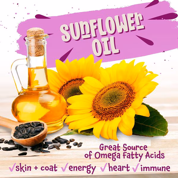 - Contains omega-3 and 6 fatty acids to nourish skin and fur, and natural fibers to support gastrointestinal health.
