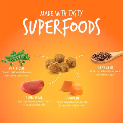 - Made with savory, protein-rich tuna and nutrient-rich superfoods like flaxseed, pea fiber, and pumpkin.