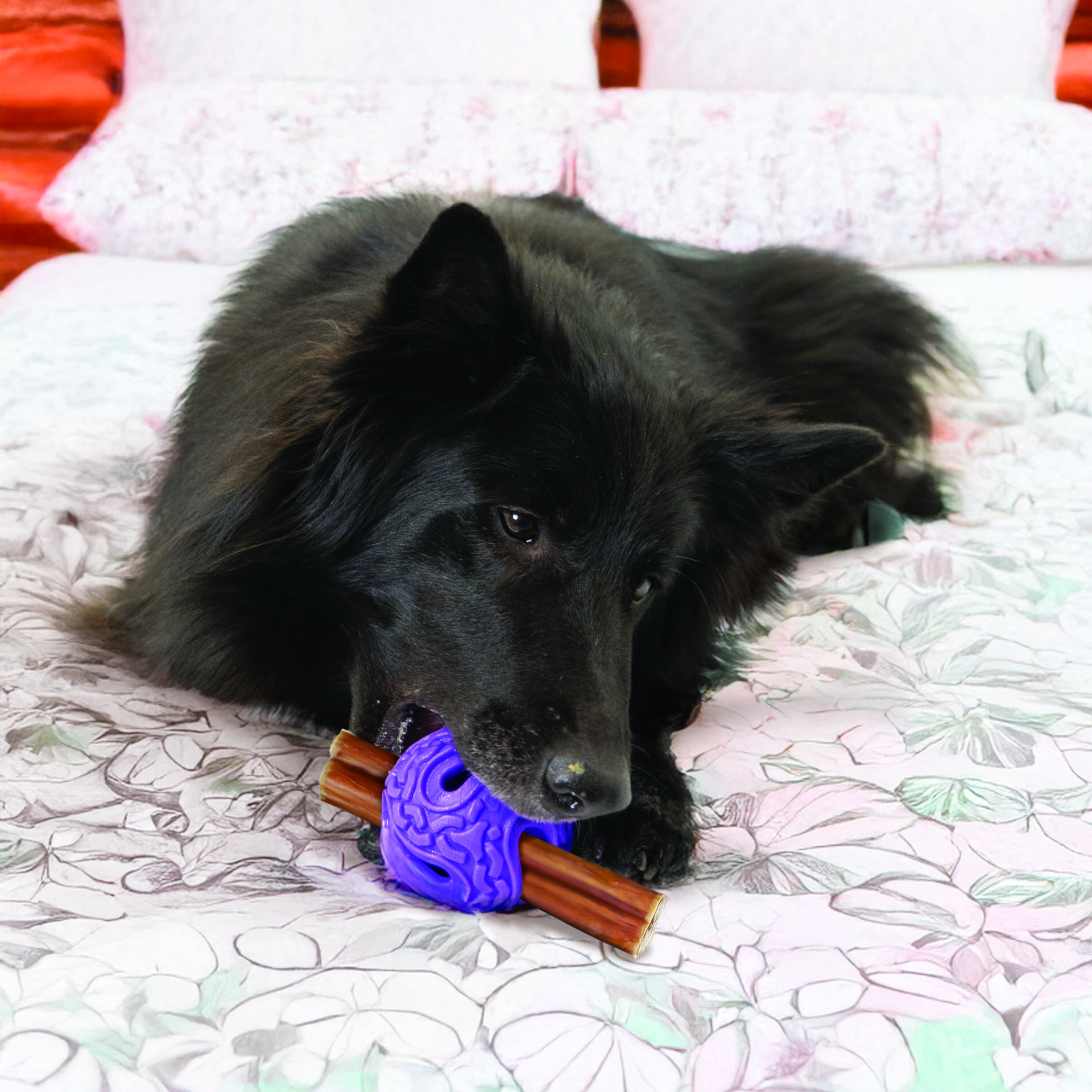- Securely grips a wide variety of chews, treats, and bully sticks