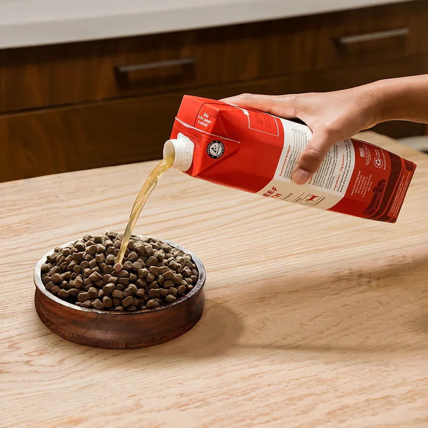 This collagen-rich bone broth instantly boosts their bowl with extra hydration, thanks to humanely-raised, grass fed beef bones, slow-simmered with functional ingredients like non-GMO pumpkin, carrot, and turmeric. Simply pour over their favorite kibble, freeze dried raw, or freshly crafted recipe to elevate nutrition and add more variety and flavor to mealtime!
