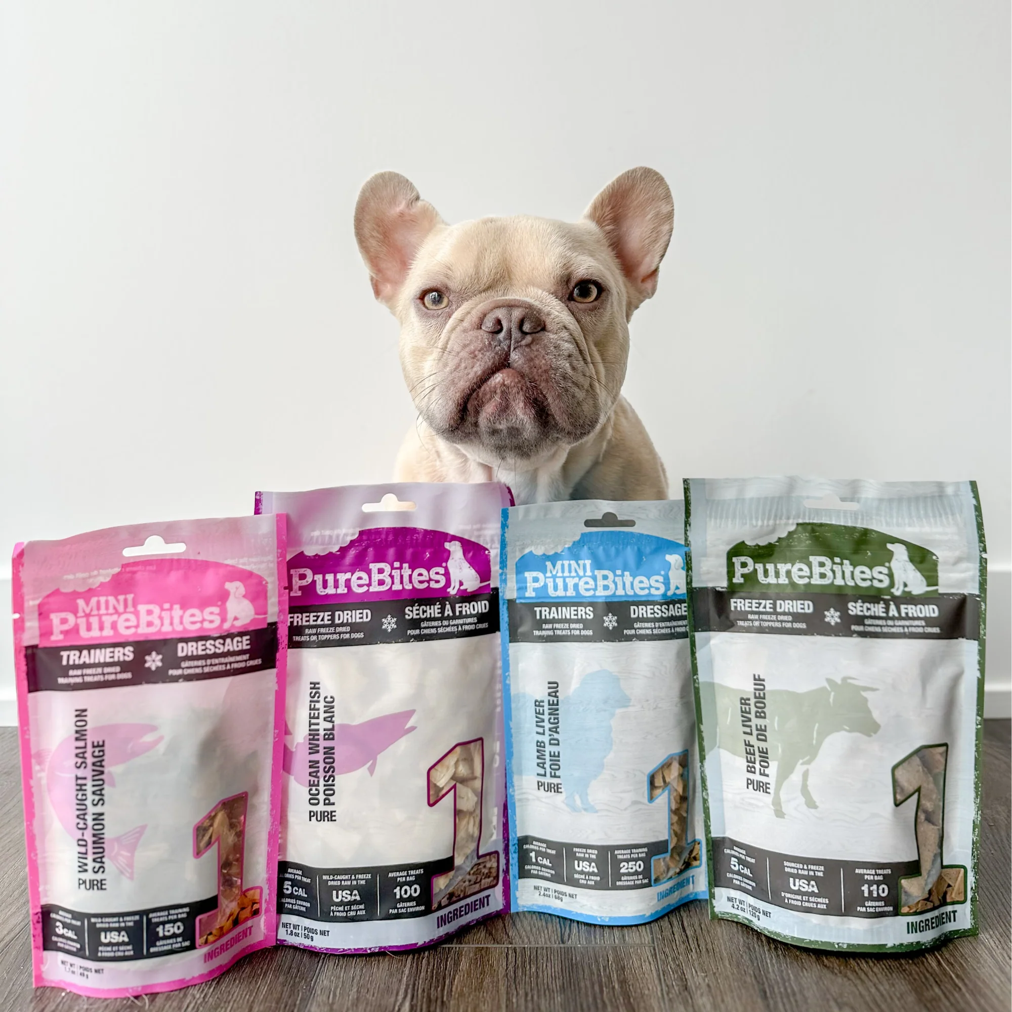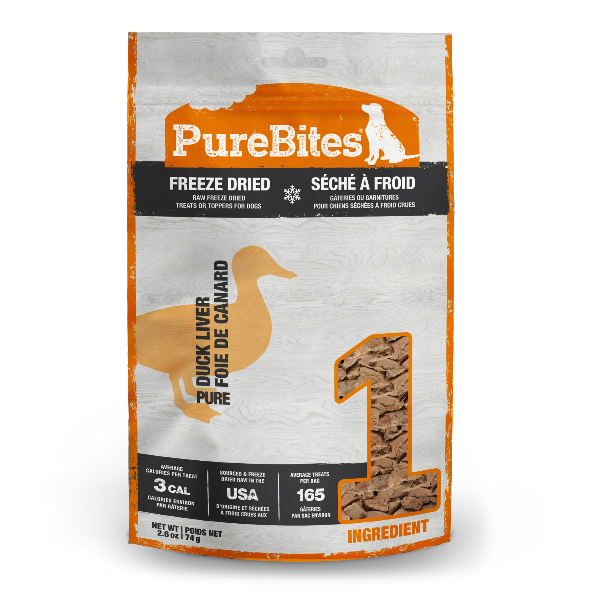 PureBites RAW freeze-dried treats are made with just one simple, human-quality ingredient — 100% pure American chicken breast, duck liver, or wild-caught salmon. Nothing else. No fillers. No artificial colors. No sweeteners. No mystery ingredients.