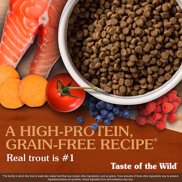 Feed your feline friend like the true carnivore that she is with this Taste of the Wild Canyon River Trout & Smoke-Flavored Salmon Grain-Free Dry Cat Food! This grain-free recipe is crafted with sweet potatoes and potatoes to purr-vide your active kitty with the energy she needs. It also features real trout and whisker-licking, smoke-flavored salmon. This recipe is supplemented with fruits and veggies, providing the antioxidants your cat needs to help support a healthy immune system and overall good health. With this grain-free kibble, you can feed your purring pal the taste of the wild!