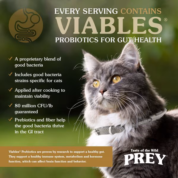 The fowl your cat’s ancestors hunted didn’t live in a cage, so neither do ours. Cage-free turkey is the main ingredient in this simple but satisfying limited ingredient diet. 98% of protein comes from just two ingredients: 60% from turkey and 38% from lentils. Sunflower oil and carefully selected vitamins and minerals round out this complete diet, while guaranteed probiotics help support digestion. A limited ingredient diet represents a simpler way of eating and more closely resembles the diet nature intended. Now you can give your cat the complete nutrition she needs and a taste she craves, without the hunt.