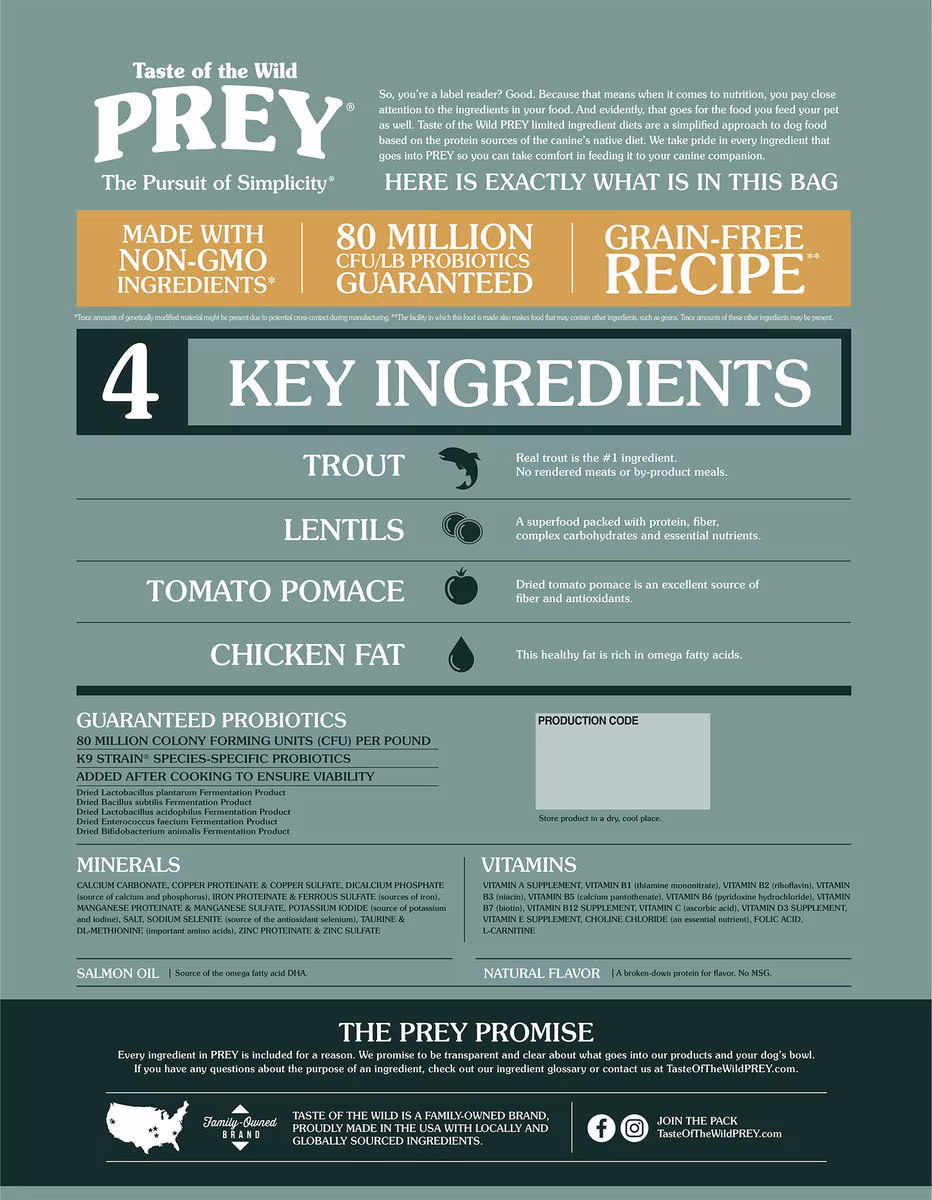 Taste of the Wild Prey Limited Ingredient Dry Dog Food – Trout 25 lb. bag