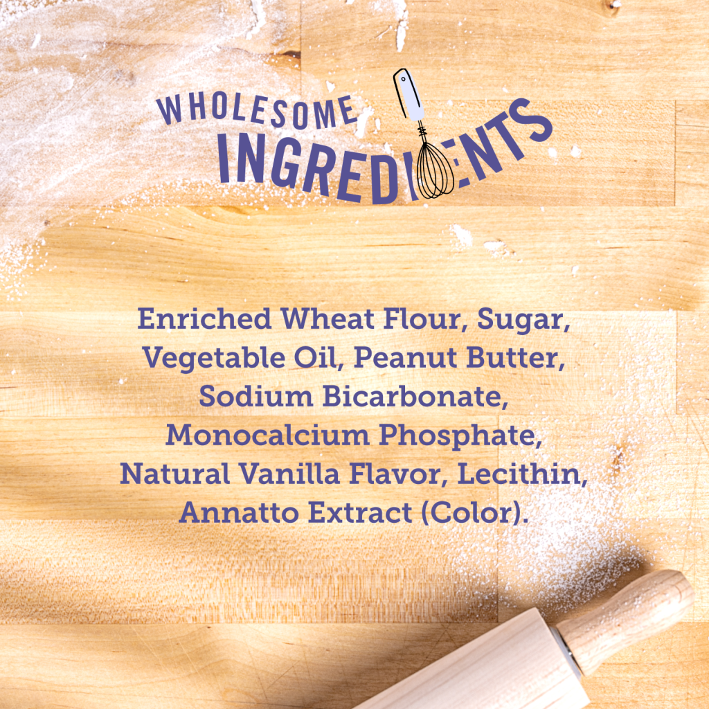 Enriched wheat flour, sugar, vegetable oil, peanut butter, sodium bicarbonate, monocalcium phosphate, natural flavor, lecithin, annatto extract (color).