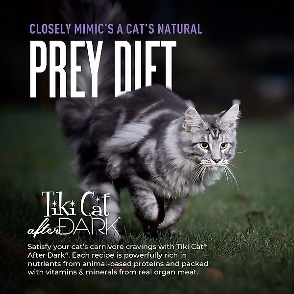 Indulge your furbaby’s carnivorous cravings with Tiki Cat After Dark Turkey & Turkey Liver Grain-Free Shredded Wet Cat Food. This protein-rich meal is made with real turkey and nutrient-dense organ meat, providing your kitty with the nutrition they need and the taste they crave. As obligate carnivores, cats thrive on a diet that closely mimics their wild ancestors, making this recipe the purr-fect choice. Plus, it’s grain- and potato-free, with no artificial preservatives, carrageenan, or added hormones.