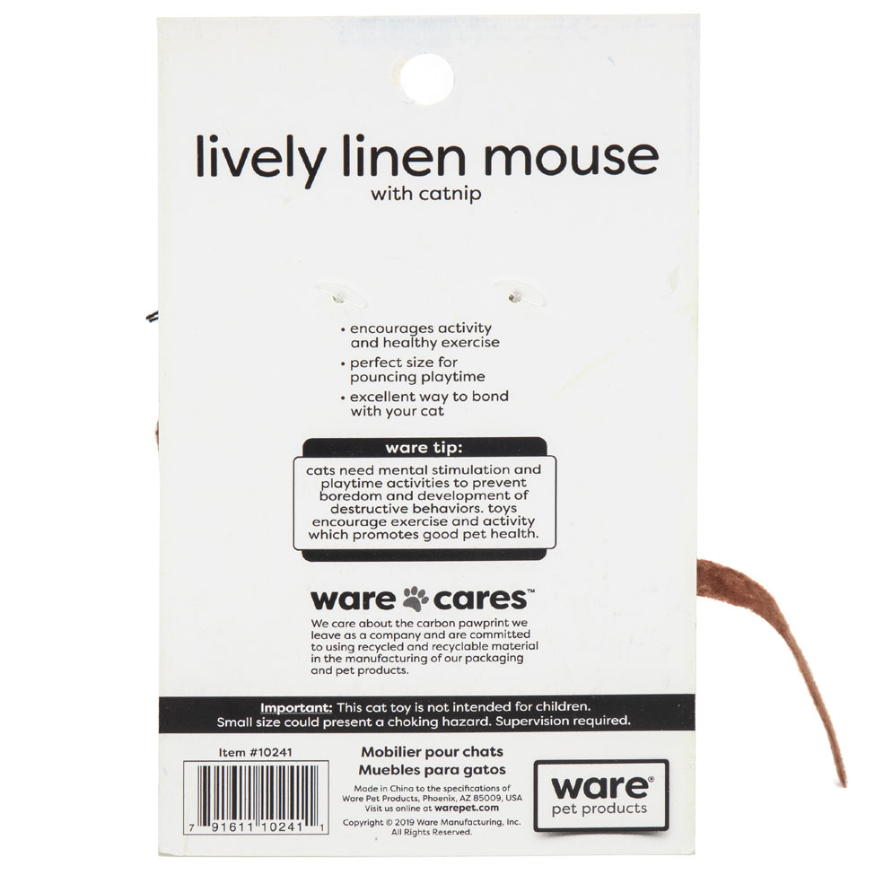 Ware Cat Lively Linen Mouse with Catnip is a pair of fashionable plush cat toy perfect for pouncing and chasing. Catnip in the center adds extra excitement and encourages active fun.