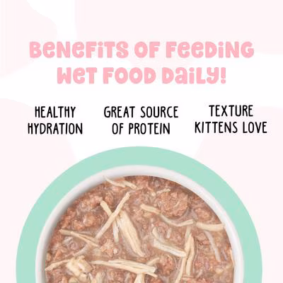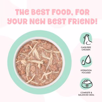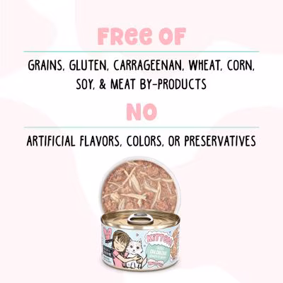 Give your growing kitten the nutrition she needs with BFF Kitten Cha Cha Cha Wet Cat Food. This tasty recipe starts with cage-free chicken and dried egg, plus it’s Grain-Free, gluten free, and carrageenan free. There is no corn, wheat, or soy, and there are no artificial colors or preservatives. It’s produced in human food facilities, and you can see the real ingredients in every recipe. This complete and balanced meal for growing kittens is made by pet parents, David and Stacie Forman, so you know it’s made with love.