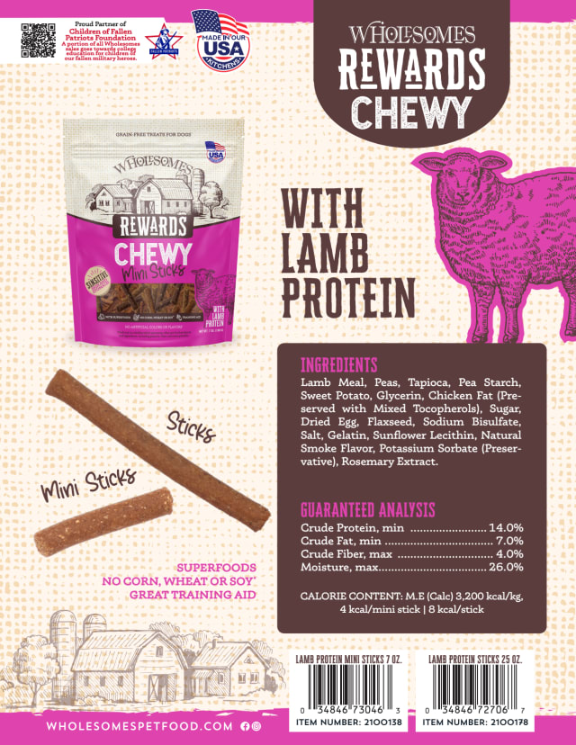 Wholesomes Rewards Chewy Sticks Lamb – 25 oz.
