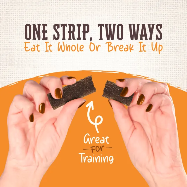 - Soft, chewy strips perfectly sized for quick rewards or can be broken into smaller pieces for training sessions.