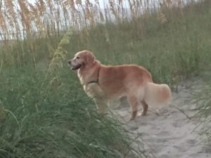 She was determined at the beach to spend the day body surfing or retrieving her water toy “bongo”.Her head would bob at night trying to fight off sleep so she wouldn’t miss anything. We would laugh at her when her head would drop. Anna wasn’t always cute and nice, she was ruthless and a calculated killer of ghost crabs. What a challenge to sniff, dig, and then “play” with them. We laughed when she got pinched on the nose all in the line of duty.