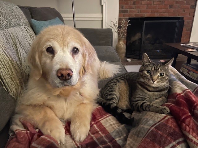 I adopted my furever friend, Austin, about 2 months ago. He is a rescue from Red Dog Farm in Greensboro. It is one of the best things I have ever done. He is a great pal and a joy to be around! He is a Lab/Golden mix, very intelligent, and has the most wonderful disposition. I would highly recommend Red Dog Farm to anyone who wants to adopt a dog, cat, or one of their other animals (they also rescue horses, goats, sheep….). I am looking forward to a long, healthy, joyful relationship with this big guy. – Annemarie D’Andrea
